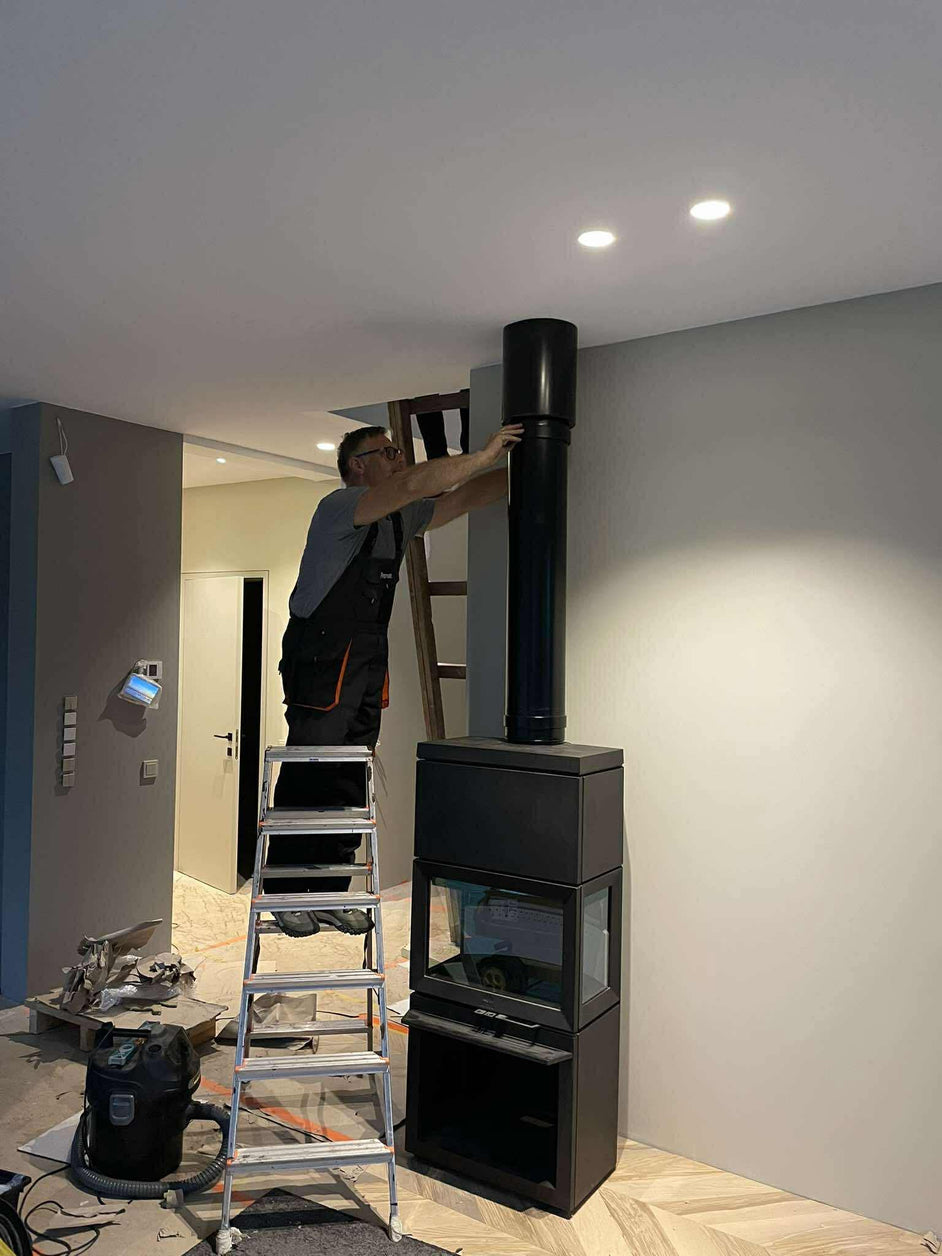• Reikalingi tik prijungimo elementai (vamzdžiai, perėjimai) iki esamo dūmtraukio arba kamino.